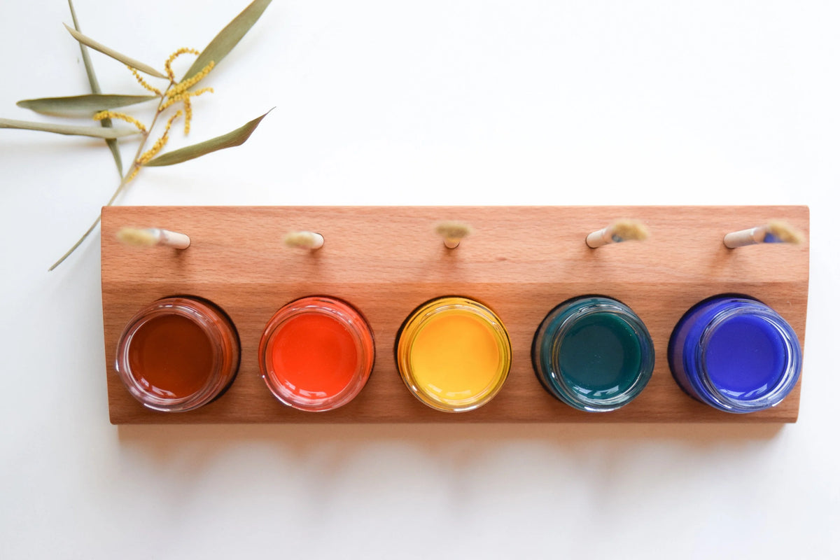 Grennn Farbtopfhalter Buche inkl. 5 Töpfe + Pinsel