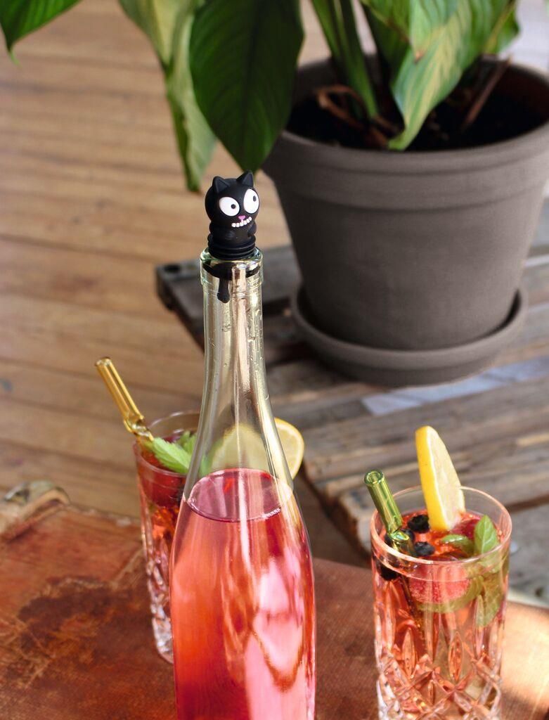 Dieser Flaschenverschluss/Flaschenstöpsel ist zu süß, schwarz, in der Form von Ed, der Katze.