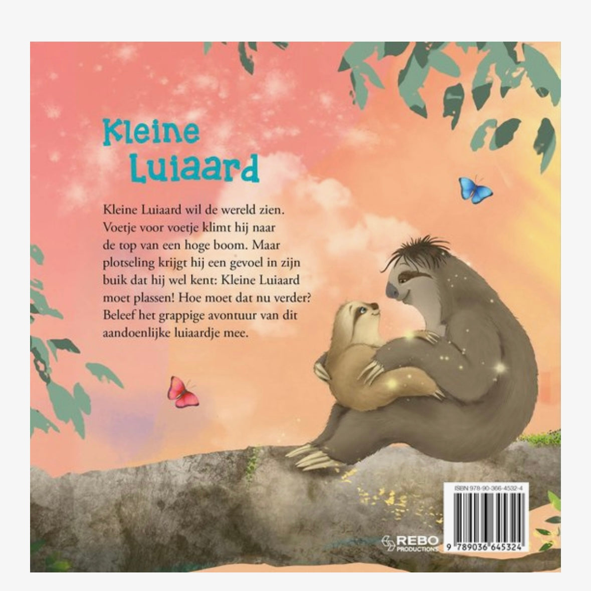 Kleine Luiaard wil de wereld zien. Voetje voor voetje klimt hij naar de top van een hoge boom. Maar plotseling krijgt hij een gevoel in zijn buik dat hij wel kent: Kleine Luiaard moet plassen! Hoe moet dat nu verder? Beleef het grappige avontuur van dit aandoenlijke luiaardje mee.