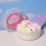 Deze boterachtige slijm voelt zijdezacht aan en laat zich heerlijk kneden, trekken en vormen. De geur van strooiselglazuur zorgt voor een zoete traktatie voor de neus, terwijl de boterzachte textuur uitnodigt tot eindeloos friemelplezier.