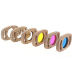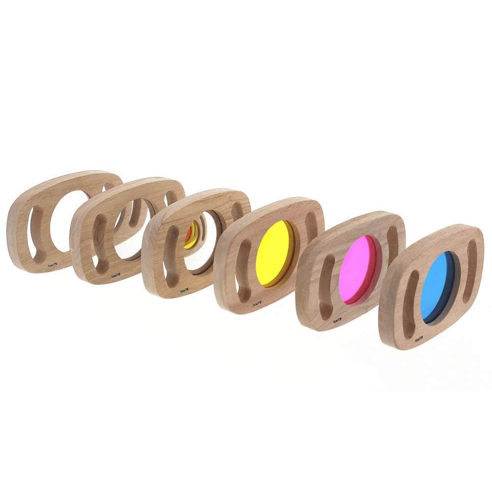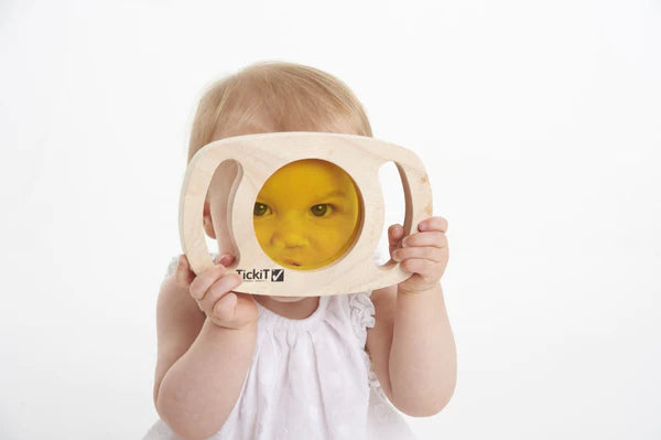Das TickiT® Easy Hold Color Panels Set besteht aus handlichen Rahmen aus massivem Gummibaumholz mit Griffen, die drei verschiedenfarbigen, durchscheinenden Paneelen dabei helfen, sich auf einzigartige Weise mit der Welt um sie herum zu verbinden.