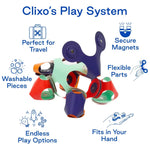 Klein van formaat, groots in fantasie – ontdek de Clixo® Quad Pack Space en neem creatief speelplezier overal mee naartoe.