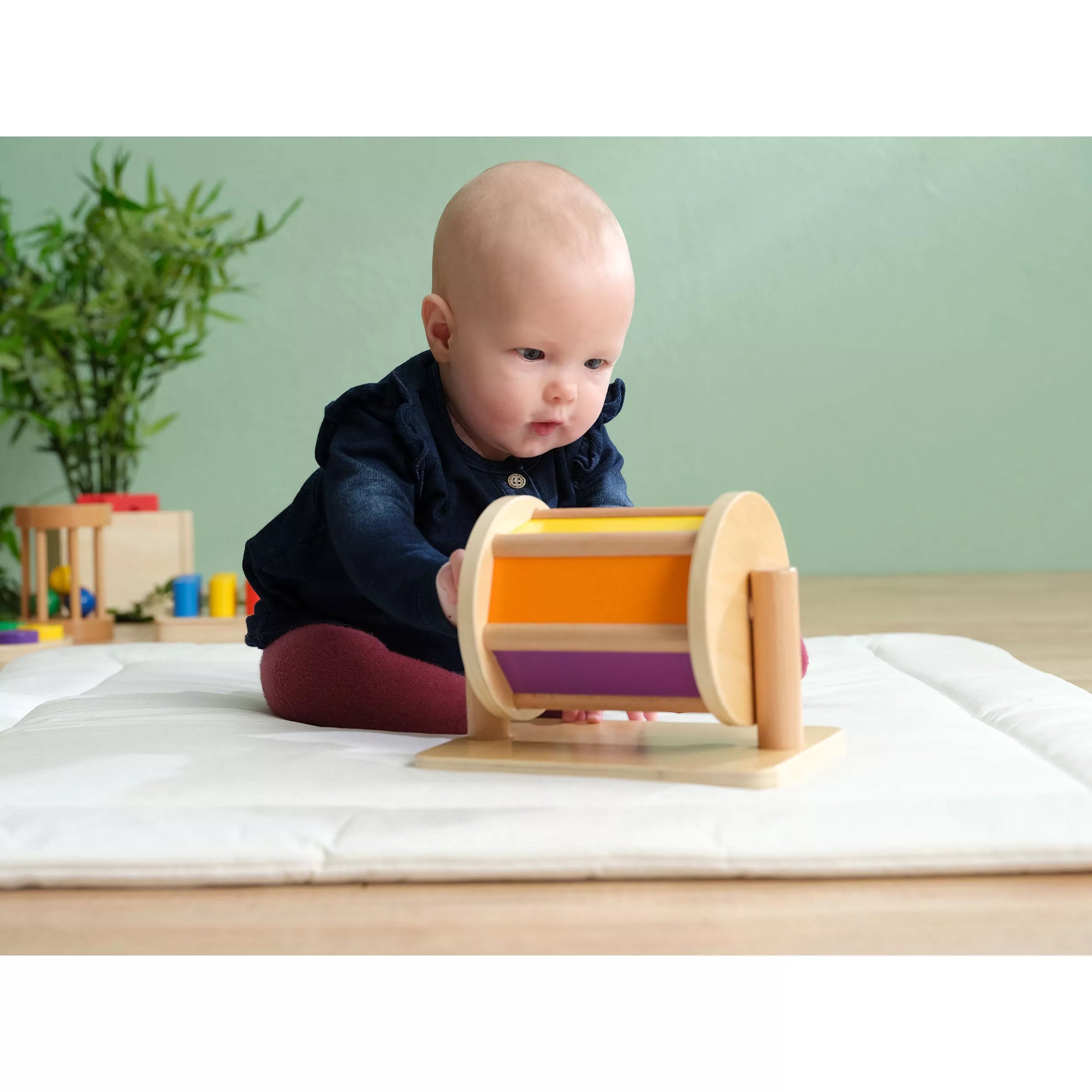 Entdecken Sie das faszinierende Spiel für Kleinkinder von 7 bis 11 Monaten: „Dreh die Trommel“!