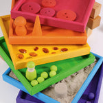 Elk plateau vormt een kleurrijke basis waarop kinderen hun creatieve spel tot leven kunnen brengen – van magische dorpen tot georganiseerde schattenverzamelingen. Ideaal voor open-einde spel, Montessori- en Waldorf-geïnspireerde activiteiten!