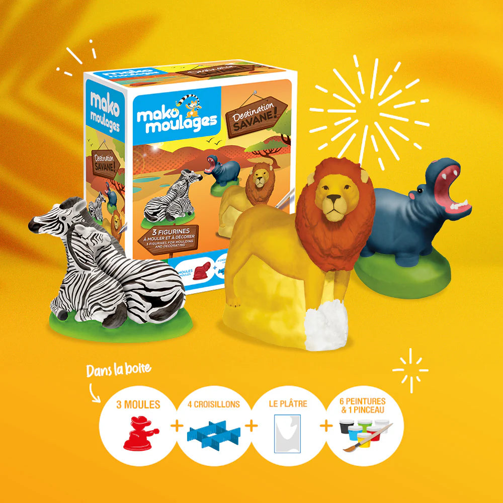 Mako Moulages - Set van 3 (Nijlpaard, Leeuw, Zebra)