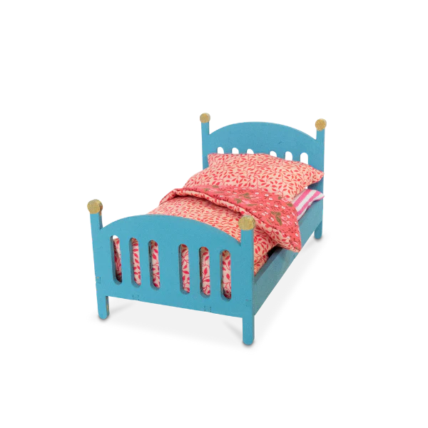 De binnenkant van het koffertje is bedrukt met een mooi vloertje en behang. Voor de spiegel kan Ella haar pliés oefenen aan de barre. Zet de houten meubeltjes eenvoudig in elkaar – als puzzelstukjes, zonder lijm – en verf ze in je favoriete kleuren. Leg het matrasje, dekentje en kussentje in het bedje om het helemaal af te maken. De schattige mini-theeset geeft Ella’s kamer een extra persoonlijk tintje. Versier de balletkamer verder met stickers en papieren mini-accessoires.