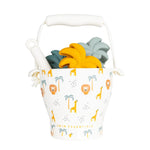 Dieses Strandspielset besteht aus robustem Silikonmaterial, ist widerstandsfähig und langlebig. Das Strandspielset besteht aus einem coolen Eimer, einer praktischen Schaufel und 3 Formen, die wie Palmen aussehen. Lassen Sie Ihre Kinder ihre eigenen Dschungelgeschichten erfinden, während sie tropische Tiere und Pflanzen im Sand formen. Und das ist noch nicht alles! Dank des mitgelieferten Beutels ist das Aufräumen ein Kinderspiel. Schütteln Sie einfach den Sand und das Wasser aus und schon sind sie bereit für den nächsten Tag am Strand.
