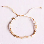 Geobsedeerd door armbanden ... Deze armband is de perfecte basis voor een verbluffende armparty. Deze viervoudige satijnen armband is versierd met kleine kralen en geeft een coole touch! Wij zijn verliefd, jij ook? Shop nu! - Gemaakt van premium roestvrij staal, dus het verkleurt niet! - De armband heeft schuifknopen en is daardoor verstelbaar.