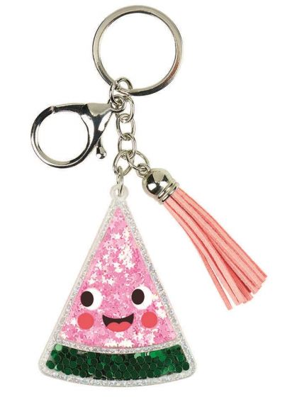 Bringen Sie mit diesem superfröhlichen Schlüsselanhänger in Form von köstlichen frischen Früchten eine Sommerparty an Ihren Schlüsselbund, Rucksack oder Ihr Federmäppchen! Wählen Sie zwischen Erdbeere, Melone oder Zitrusfrucht und lassen Sie sich von der verspielten Füllung aus Perlen und Glitzerpailletten überraschen, die bei jeder Bewegung funkeln.