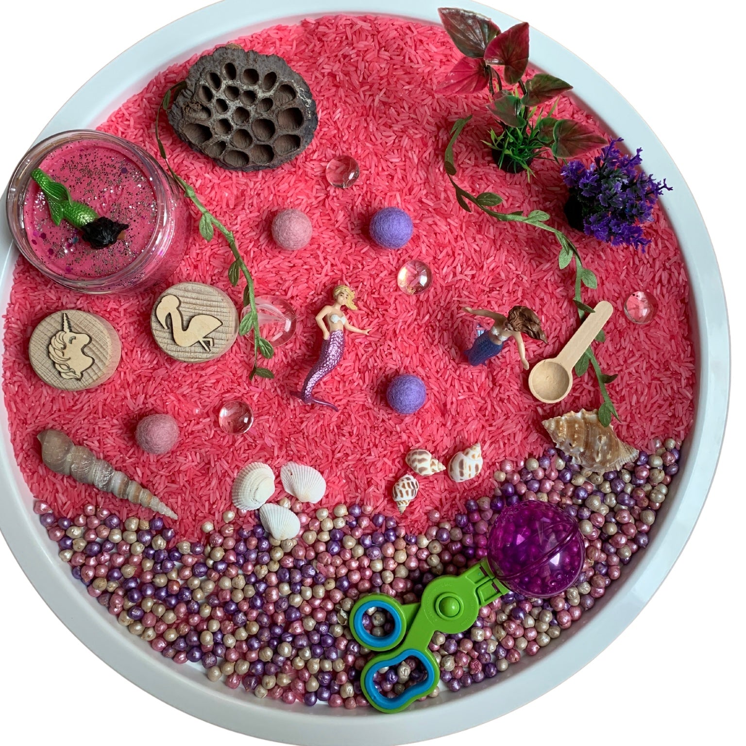 Entdecken Sie die Magie der Unterwasserwelt mit unserer bezaubernden Spielbox zum Thema Meerjungfrau. Dieses sorgfältig gefertigte sensorische Spielset soll die Sinne anregen, die Kreativität fördern und die Fantasie der Kinder anregen.